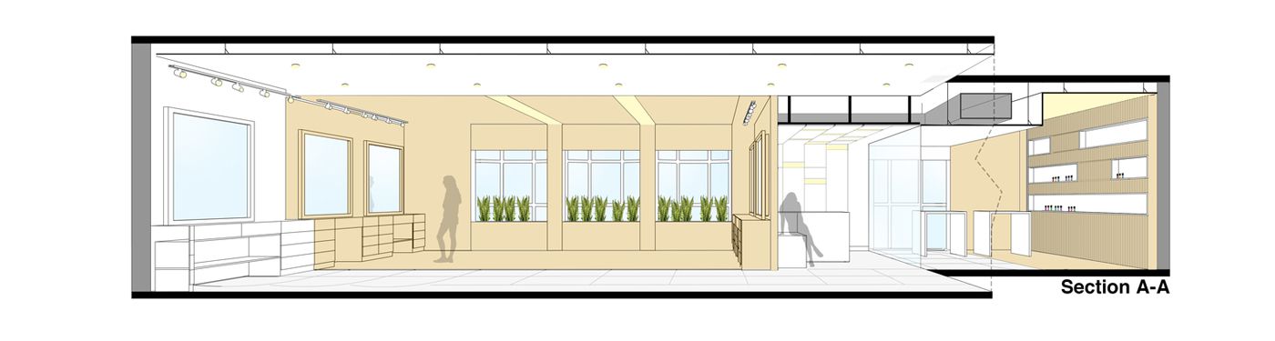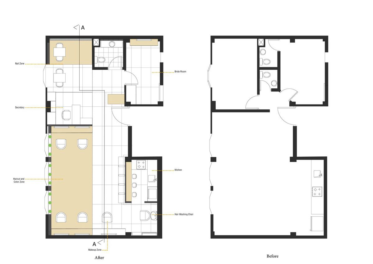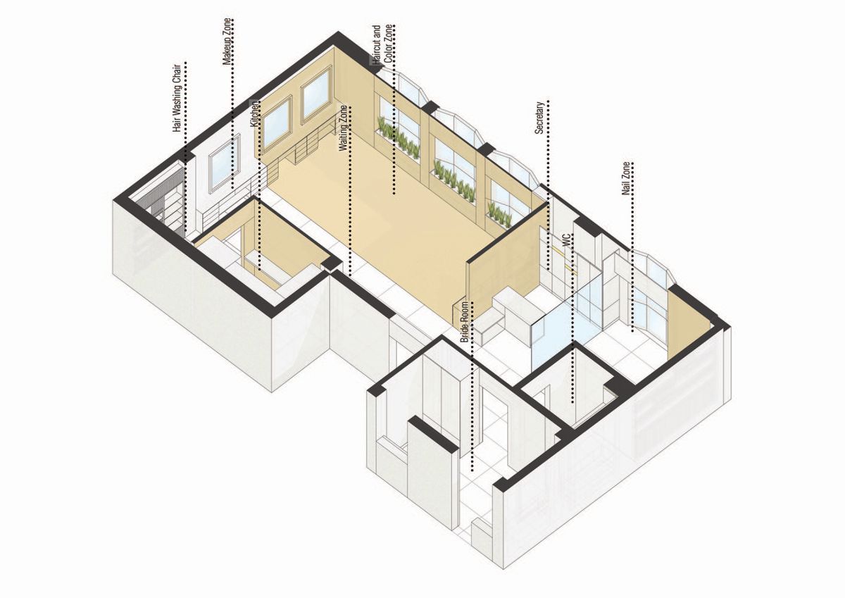 ايده ی اصلی این پروژه ، ايجاد فضاهای مجزا با كاربرد های مختلف بود که در عين يكپارچگی به شکل باکس هايی با دو رنگ مختلف طراحی شوند تا فضاهای كثيف و تميز را از يكديگر جدا کنند. این باکس ها، بسته یا نيمه بسته هستند که هیچ گونه تداخل شنیداری یا بویایی ای برای افراد ايجاد نمی كنند. مشتری در این سالن، فضای اختصاصی مکفی ای در اختیار دارد. می توان از داخل بعضی از این باکس ها رد شد، اما برخی از آنها فقط جزئی از طراحی این سالن هستند.