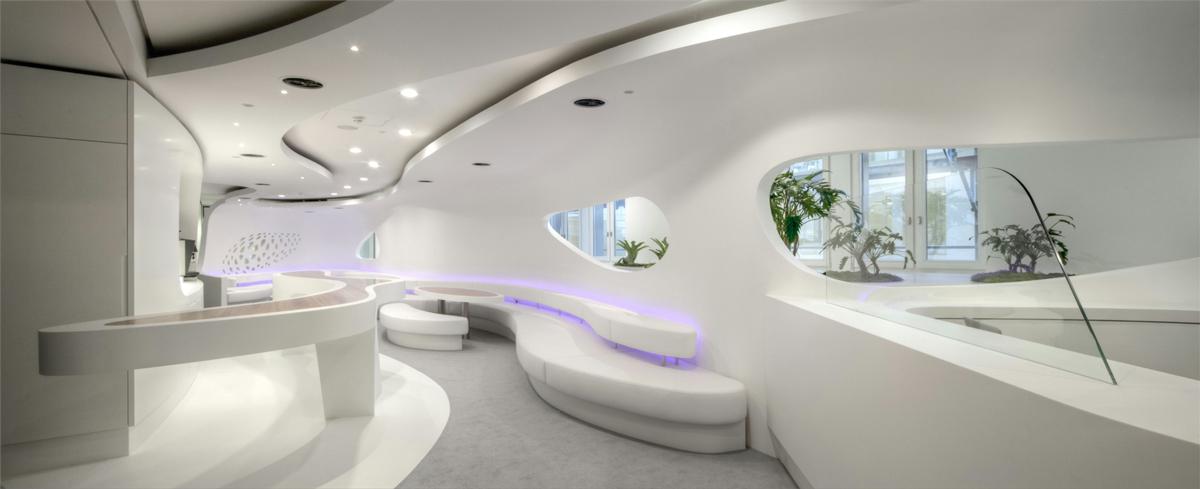 زبان رسمی این فریفُرم (فرم آزاد) ارگانیک به عنوان یک تِم ادامه پیدا کرده و در قالب یک فرش با طرح گرافیکی نمود پیدا کرده است ، که این فرش ظاهر ، مشخصه ی خود را به مناطق دیگر دفتر نیز انتقال داده است. پس از طراحی پیشرفته محوطه ی کار، دفترها و اتاق کنفرانس نیز با استفاده از یک سبک باز و جهت تامین حداکثر عملکرد تعریف شده اند.