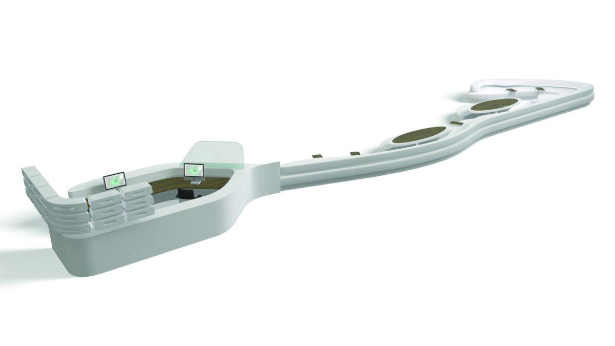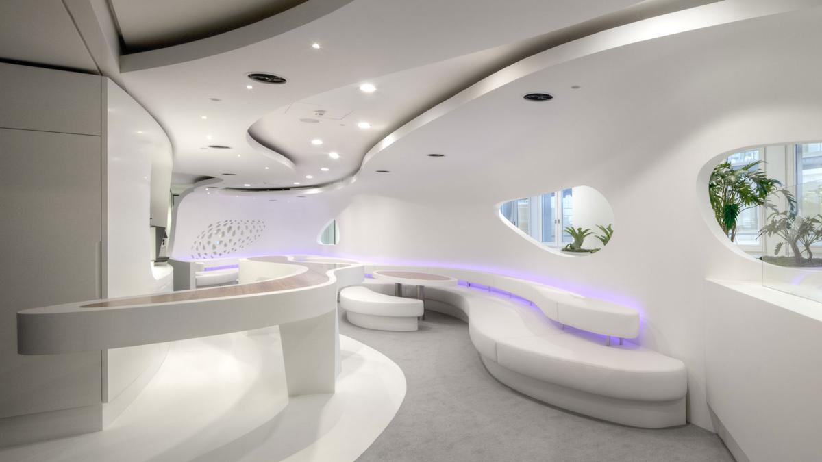عنصر مرکزی دفتر ، سالن استراحت منحنی شکل آن است که نه تنها مجهز به ایستگاه های کاری متحرک است، بلکه با ادغام اندازه ها و ترتیبات مختلفی از صندلی ها، فضایی جهت تفریح و برگزاری جلسات غیررسمی و همچنین کنفرانس ها و پِرِزِنتِیشِن های بزرگتر ارائه میکند.