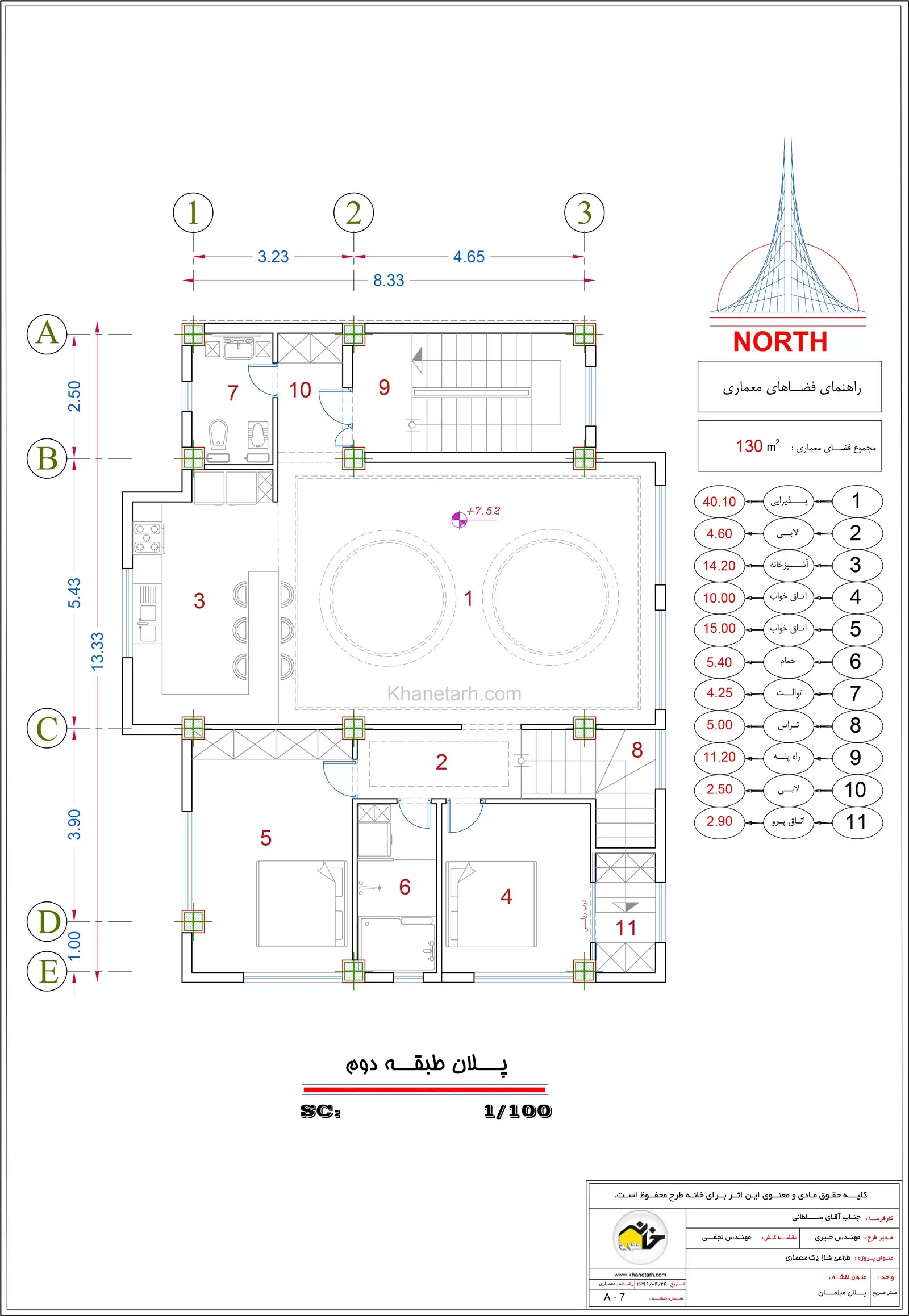 پروژه : نقشه ساختمان دو خوابه ۱۳۰ متری + نقشه دوبلکس