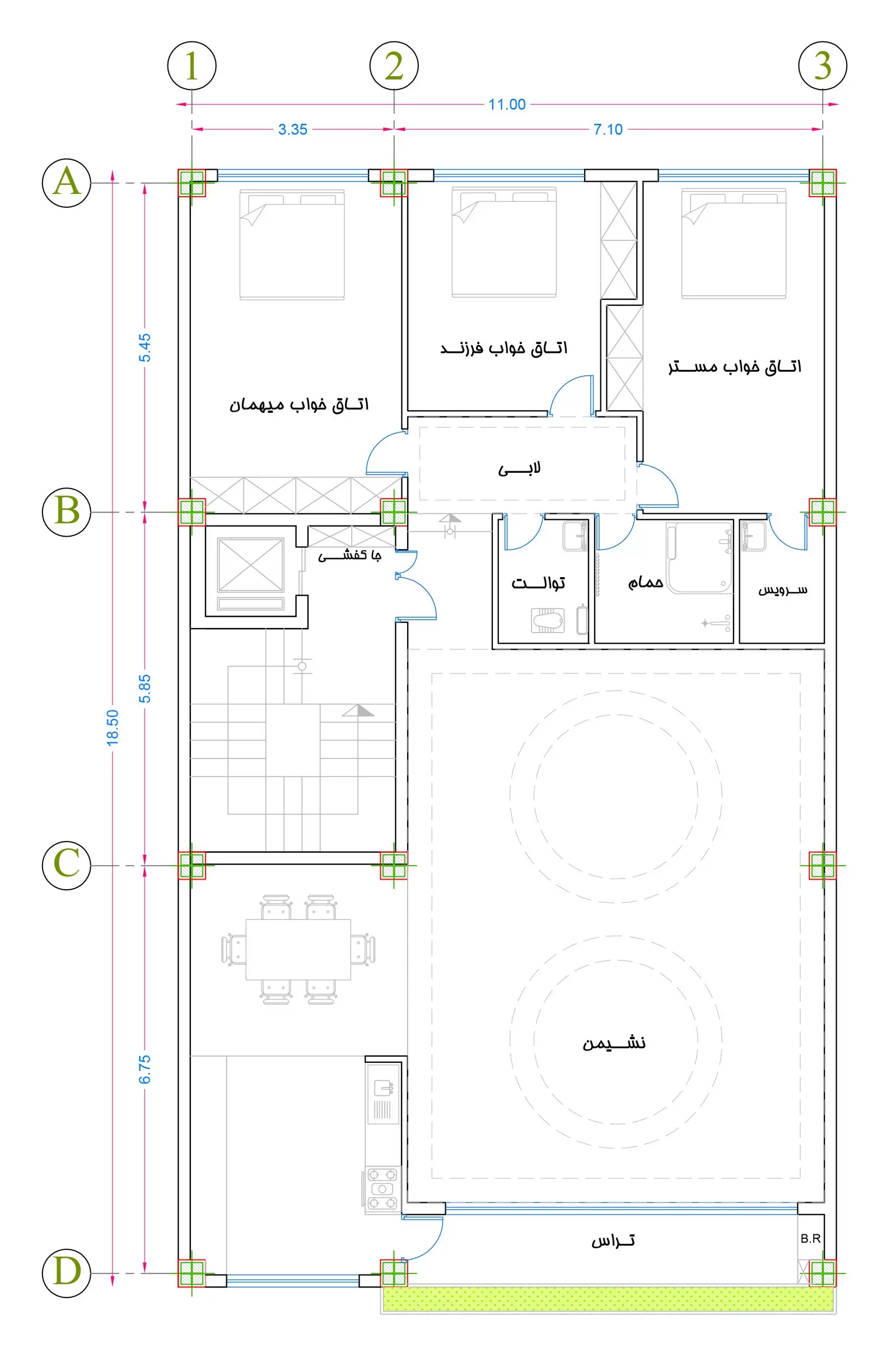 نقشه ساختمان مسکونی دارای اصول و قواعدی است که اگر در جای خود به آنها توجه نشود در نهایت با ساختمانی مواجه می شویم که آرامش را از کاربرانش صلب می کند. یکی از این اصول و قواعد توجه به فضاهای عمومی و خصوصی در طراحی نقشه ساختمان مسکونی است. در طراحی نقشه ساختمان مسکونی جناب آقای رادجو به تمام مسائل مهم و قابل تامل در این زمینه توجه شد. در ادامه به توضیحات بیشتری در خصوص طراحی پلان طبقات خواهیم پرداخت.