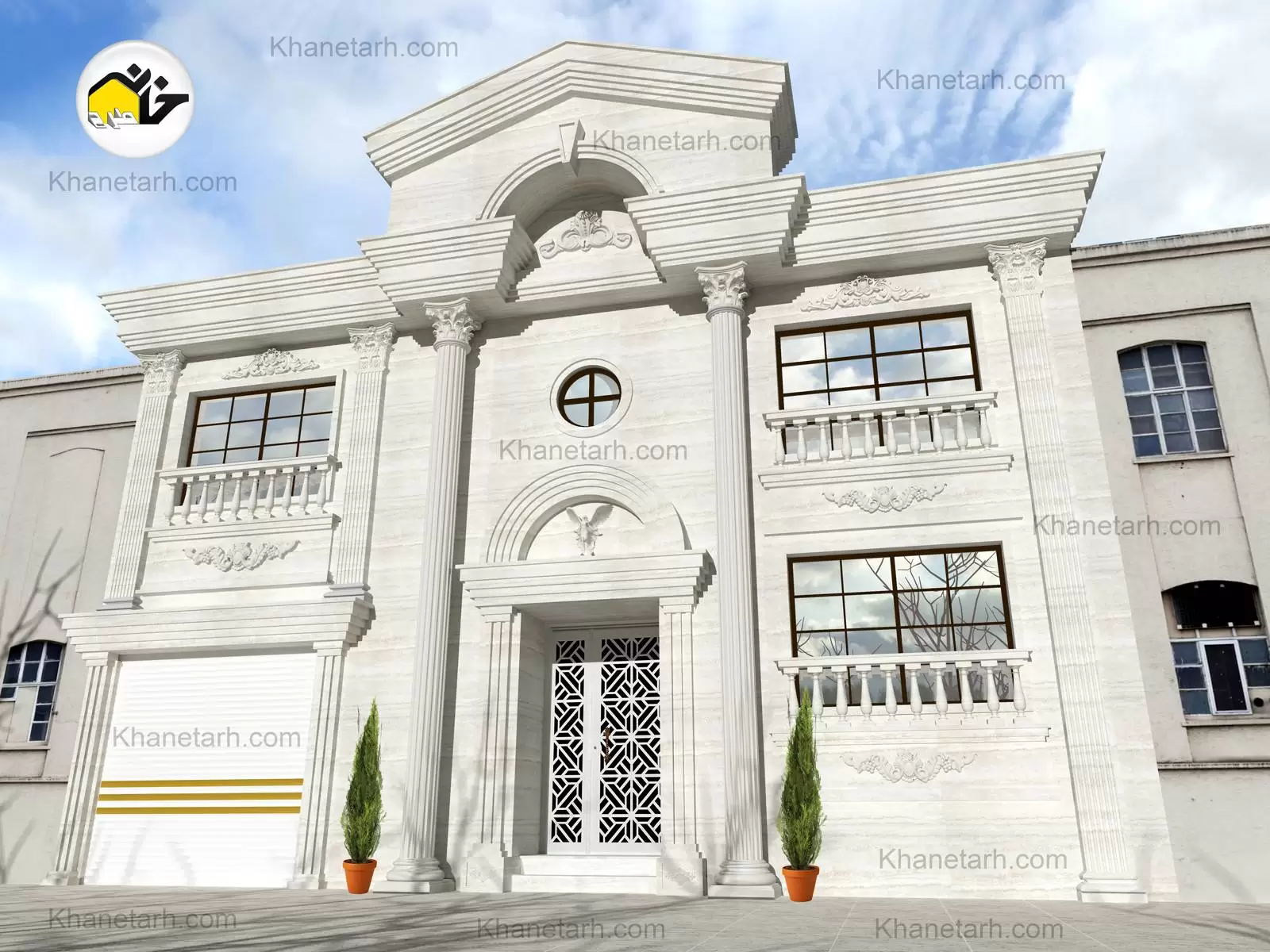 نمای رومی ساختمان دو طبقه توسط تیم معماری خانه طرح برای کارفرمای لرستانی جناب آقای خوشنویس در شهر نورآباد طراحی شد. ایده و کانسبت اولیه این نما به خواست آقای خوشنویس شکل گرفت و کارفرما از مهندس طراح درخواست کرد که نمای ساختمان به سبک رومی طراحی شود. درب و پنجره ها در نما پیش از طراحی کارگذاشته شده بود و از این رو کمی دست مهندس معمار بسته بود. با این حال موقعیت قرارگیری درب و پنجره با توجه به این موضوع که طراحی پلان این ساختمان نیز توسط تیم خانه طرح ، طراحی شده بود چیدمان و سازماندهی مناسبی برای طراحی یک نمای رومی داشت.در طراحی نمای ساختمان از ایجاد المان های شلوغ تا حد امکان اجتناب شد. در ادامه می توانید تصاویری از طراحی نمای رومی ساختمان دو طبقه در شهر نور آباد ارستان را مشاهده فرمایید.