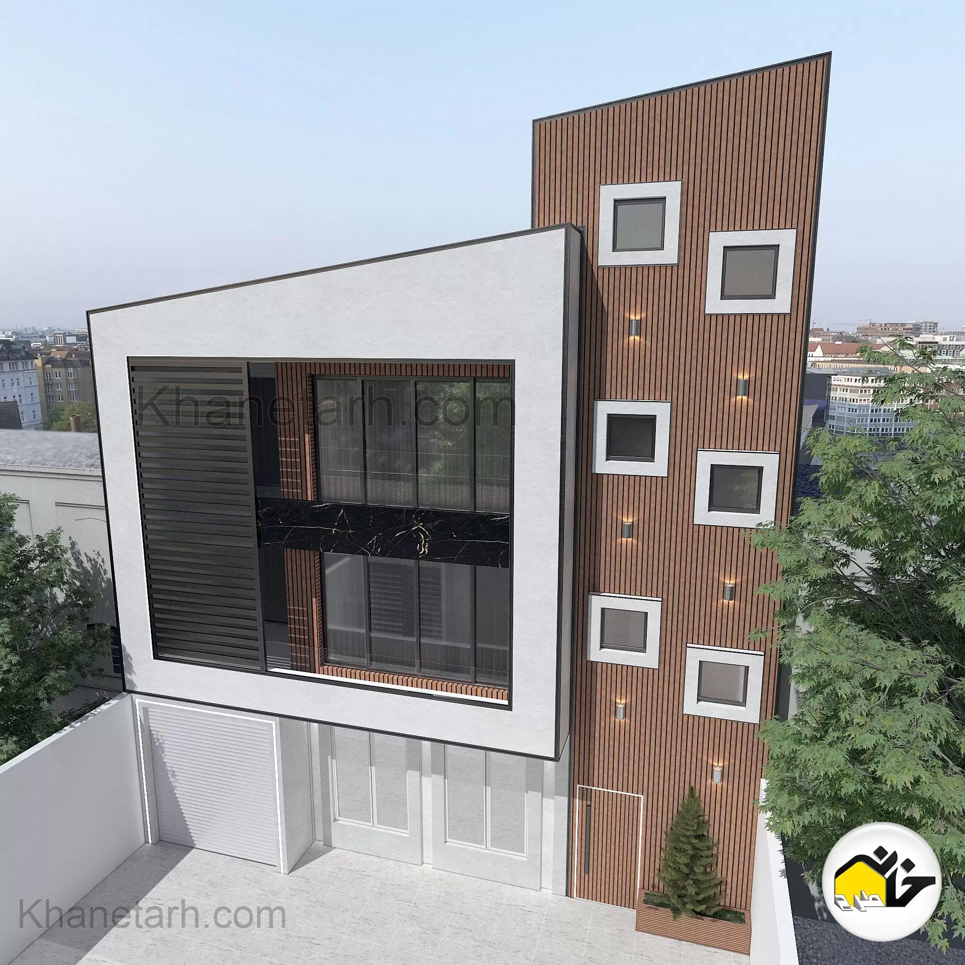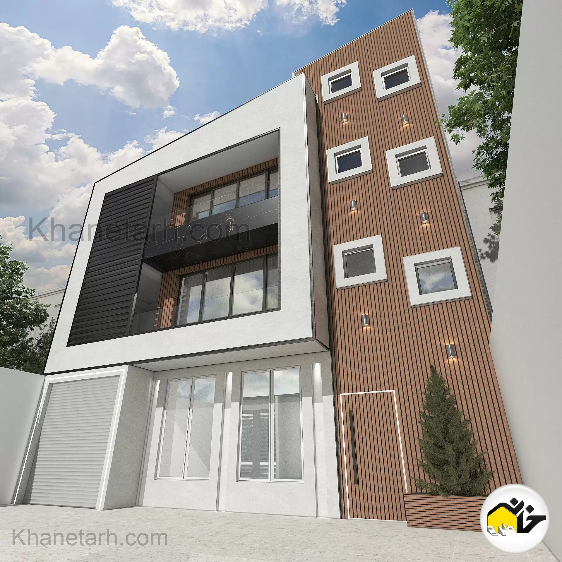 پروژه : نمای ساختمان سه طبقه لوکس – نمای مدرن ساده